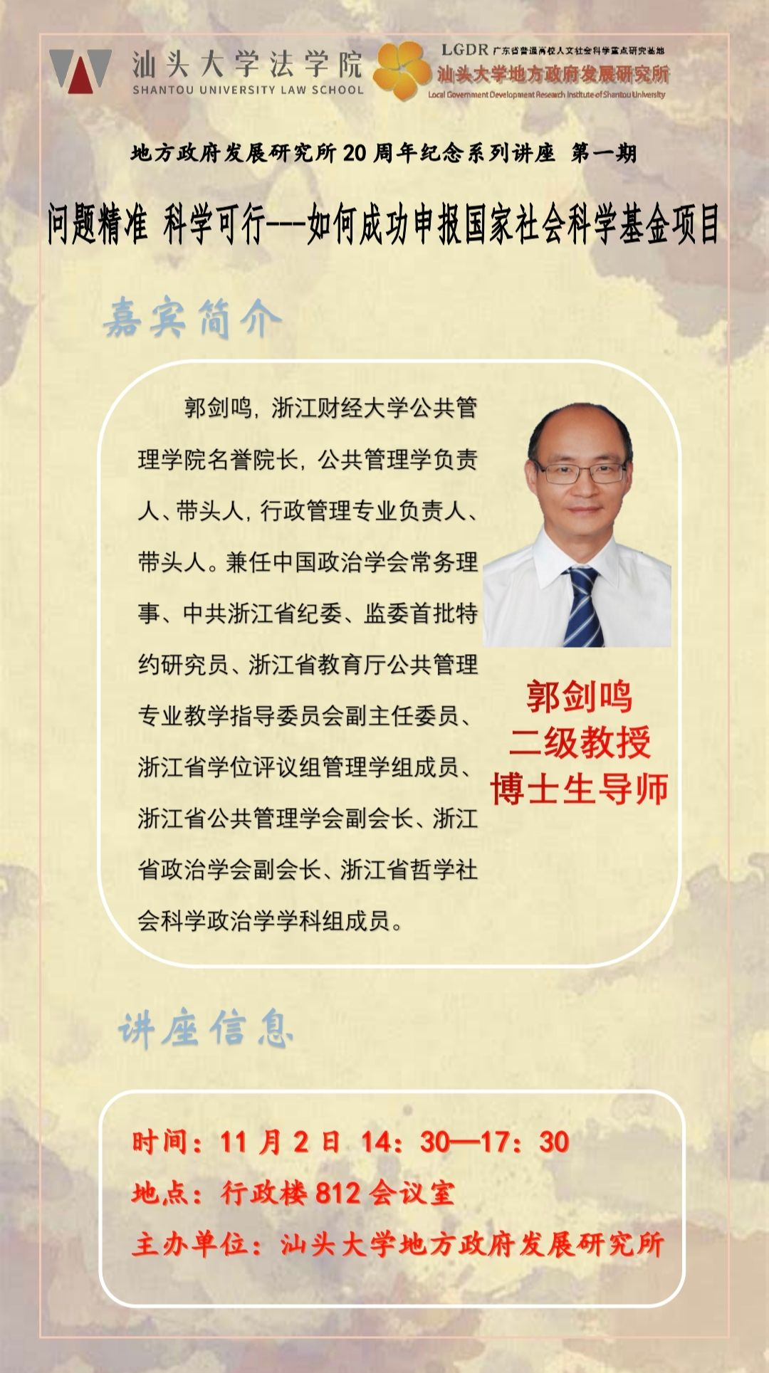 汕头大学地方政府发展研究所20周年纪念系列讲座预告