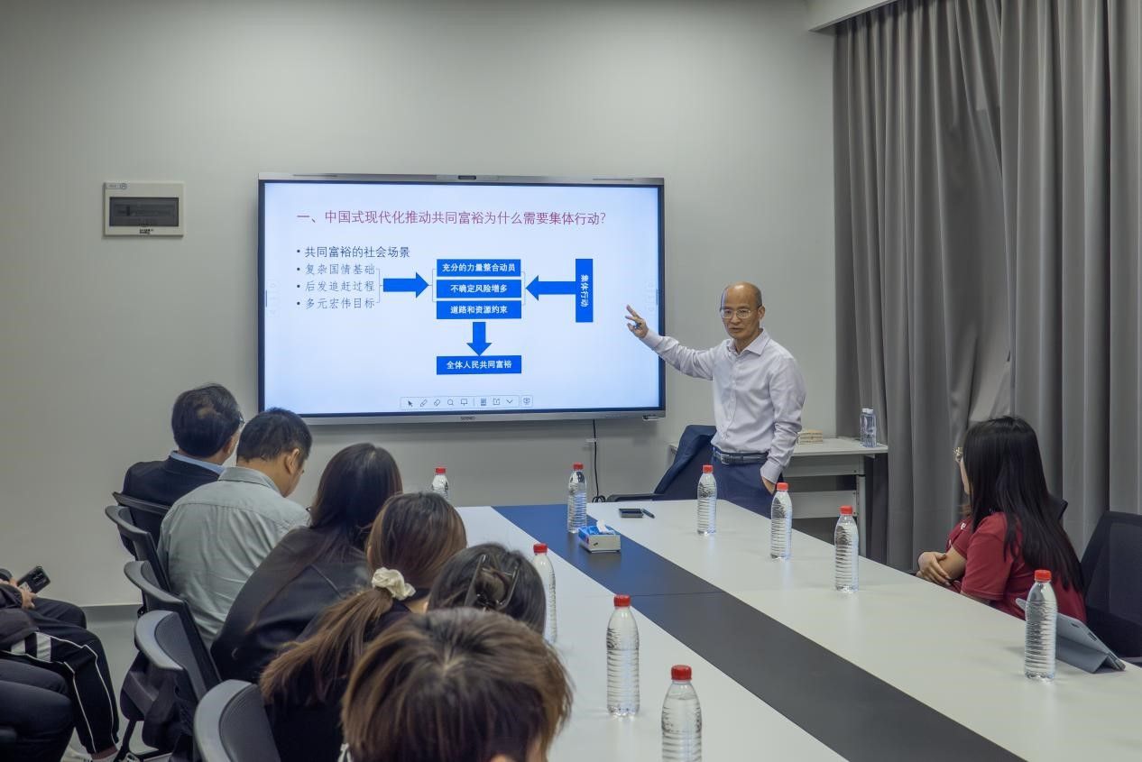 为庆祝汕头大学地方政府发展研究所成立20周年,搭建高水平学术交流平台,2025年11月2日,汕头大学地方政府发展研究所20周年纪念系列讲座接连在行政楼812会议室顺利举行。当日下午14:30,第一场讲座聚焦国家社会科学基金项目申报技巧;晚间19:00,第二场讲座如期开讲,以“中国式现代化推进全体人民共同富裕的中轴逻辑及其建构”为主题。两期讲座均特邀二级教授、博士生导师郭剑鸣担任主讲嘉宾,吸引众多师生参与讨论,学术氛围浓厚。