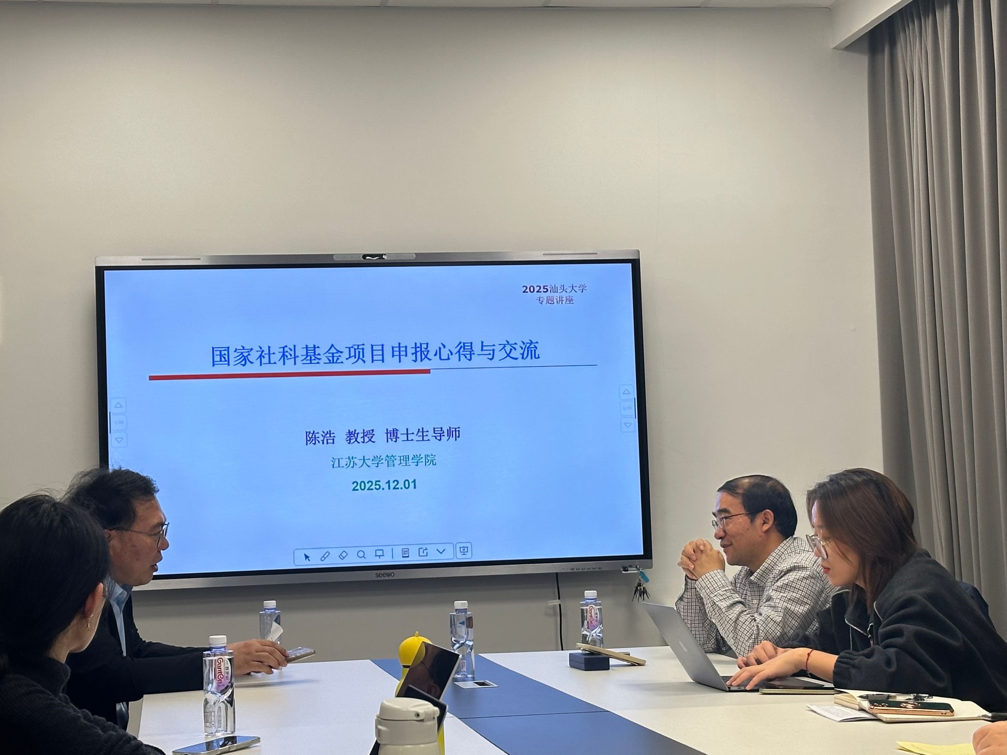 2025年12月1日晚,由汕头大学地方政府发展研究所主办的“地方政府发展研究所20周年纪念系列讲座”第六期在行政楼812会议室成功举办。讲座特邀江苏大学教授、博士生导师陈浩担任主讲嘉宾,主题为《国家社科基金项目申报心得与交流》。